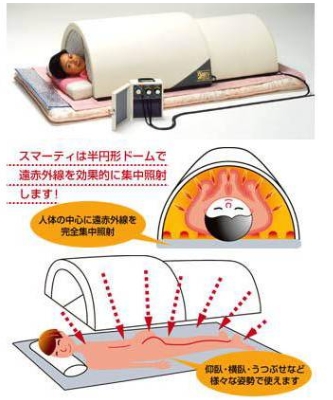 スマーティはドーム型の遠赤外線サウナで、身体全体を覆うように遠赤外線が照射されます。