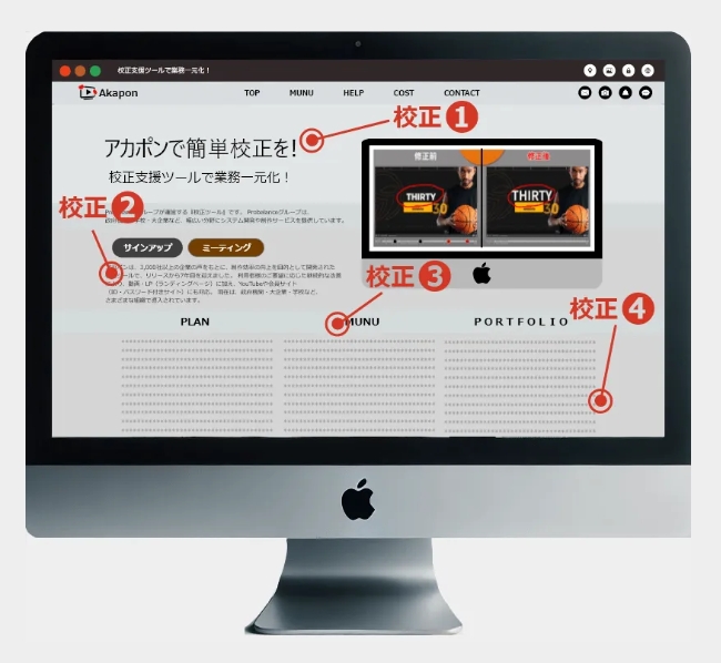 「アカポン」は、デザインや動画、WEBサイトなどのコンテンツ制作における修正指示・フィードバックをオンラインで簡単に行えるクラウドベースの校正支援ツールです。
