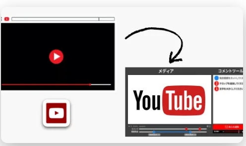 - 動画・WEB・画像・PDF対応 – YouTubeやWEBページ、Googleドライブ上の素材など幅広い制作物をそのままツールで閲覧・編集コメント可能です。