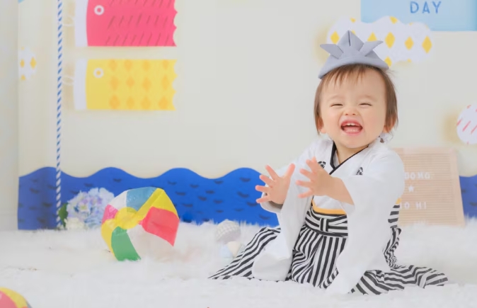 たとえば袴ロンパースは、伝統的な和装の雰囲気を残しながらも、おむつ替えやお着替えが簡単な一体型仕様になっているため、パパ・ママにも嬉しい機能性を備えています。         写真撮影や記念日の装いとして子どもの成長を記録するアイテムとしてもおすすめです。