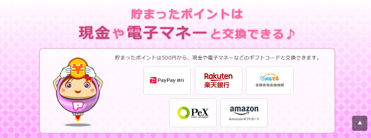 初心者でも気軽に始められる無料コンテンツや、豊富なポイント獲得方法が揃っているため、日々のネット利用で効率的にポイントを貯めることができます。 貯まったポイントは現金や電子マネー、ギフトコードに交換可能なので、節約やお小遣い稼ぎにも最適です。