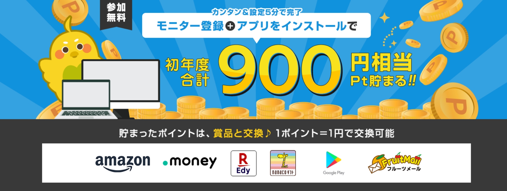 登録自体は無料で、アンケート回答やモニター活動に応じてポイントが貯まります。 貯めたポイントは現金やギフト券など多彩な交換先に交換できるため、「おこづかい稼ぎ」や「在宅副収入」として幅広い年代の方に人気です。