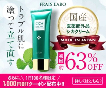 「シカ(CICA)」とは、肌を落ち着かせるとされる“ツボクサエキス”をベースにしたスキンケア成分の総称です。                                     韓国で人気となったシカクリームのトレンドを受け、日本人の肌に合うように調整されたのがこのフレイスラボ版です。