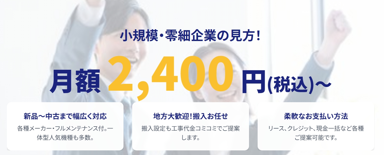 そんな課題を解決するのが、コピー機導入をトータルサポートするサービスコピー機王国です。